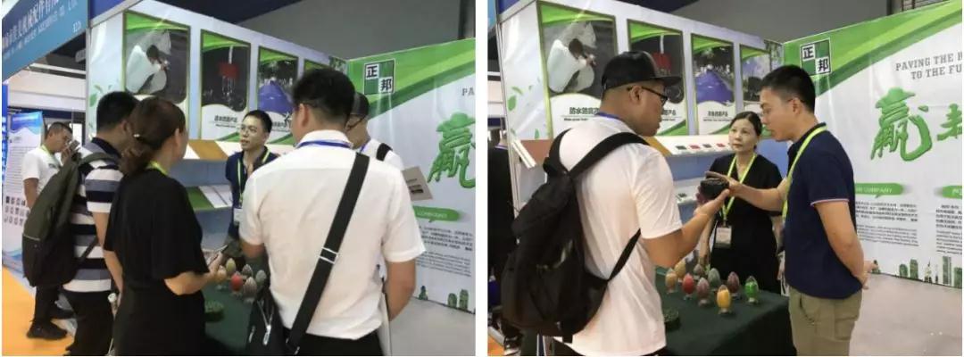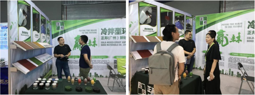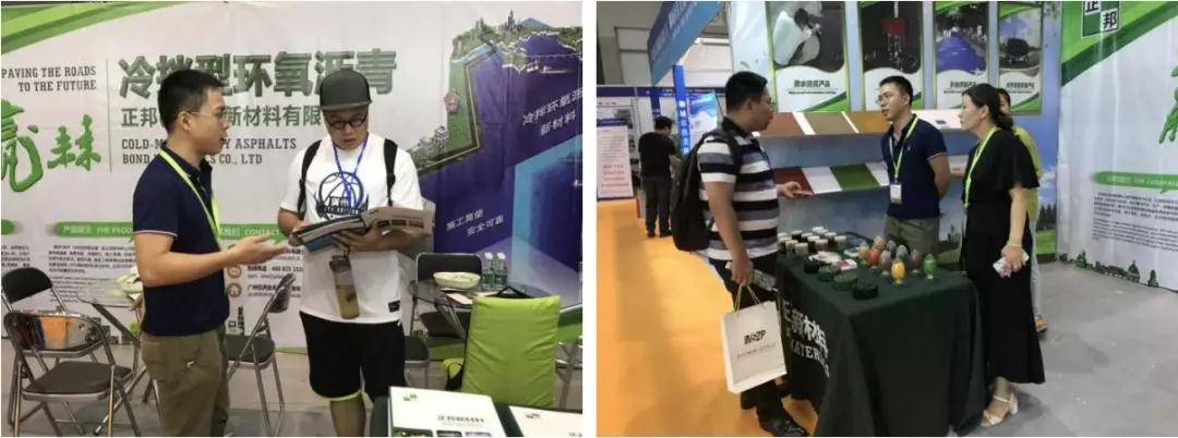 展會第一天,現(xiàn)場的觀眾絡(luò)繹不絕,紛紛駐足正邦新材料公司展位,對“冷拌型環(huán)氧瀝青”表現(xiàn)出濃厚興趣。