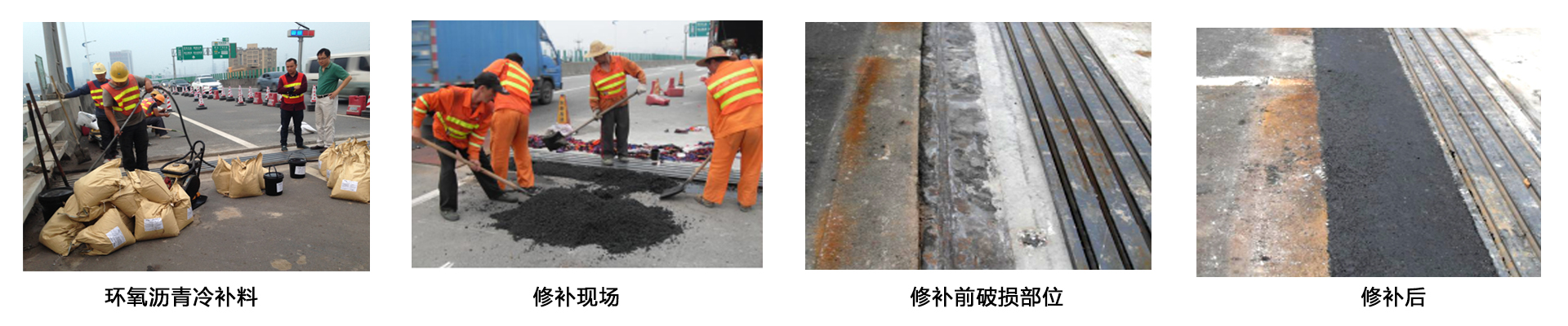 “環(huán)氧瀝青冷補料”是一種新型路面鋪設和修補材料,由正邦化工研發(fā)并已獲得專利授權, 這種冷補料在常溫下生產(chǎn)及儲存,使用時不需加熱,在施工現(xiàn)場與固化劑直接拌合,攤鋪壓平,即可與原橋面緊密粘結,形成高強度、高韌性、耐高低溫的路面,經(jīng)過短時間養(yǎng)護后,即可通車。因此,使用這種冷補料,能大大提高施工速度,降低工程成本;最重要的,是整個施工過程不排放任何化學氣體,既環(huán)保又安全。據(jù)工程管理人員介紹:以往類似工程都采用傳統(tǒng)熱攪拌瀝青混合料,不僅前處理麻煩,要將材料加熱,而且修補后路面要保養(yǎng)很長時間才能通車,整個修補過程耗時長,成本高,瀝青加熱時散發(fā)出大量化學氣體,不僅對健康不利,還污染環(huán)境。