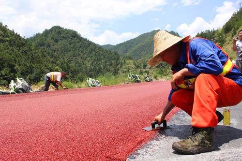 6、色彩豐富,豐富的色彩充分彌補(bǔ)了傳統(tǒng)瀝青路面顏色單一的不足,美化了道路景觀環(huán)境;