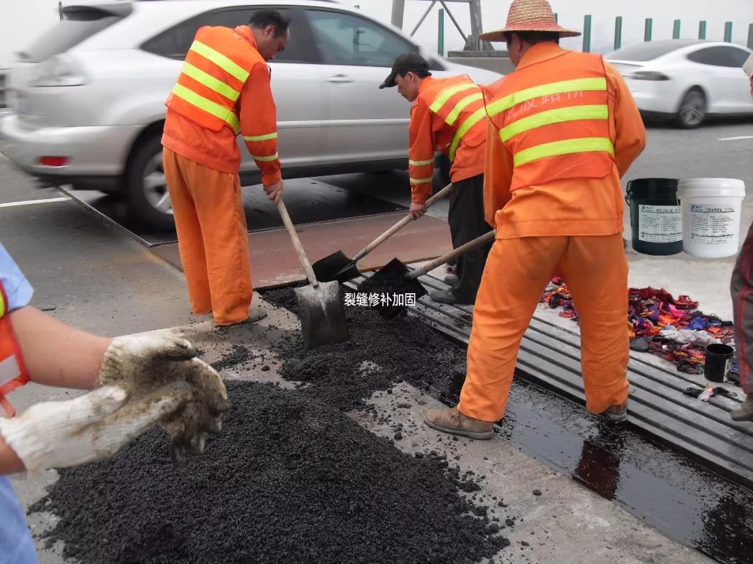 裂縫修補采用正邦新材料的研發(fā)產(chǎn)品,此產(chǎn)品是一種由冷拌型環(huán)氧瀝青和級配石子骨料,經(jīng)特殊工藝預(yù)拌合而成的新型高性能瀝青混凝土混合料,產(chǎn)品呈黑色疏松粒料,適用于常溫冷施工路面破損修補等用途。使用時,產(chǎn)品需與固化劑一起配合使用,現(xiàn)場即拌即用,延長橋梁的使用壽命,施工快捷方便,不需要大型機械作業(yè),加固效果安全可靠。