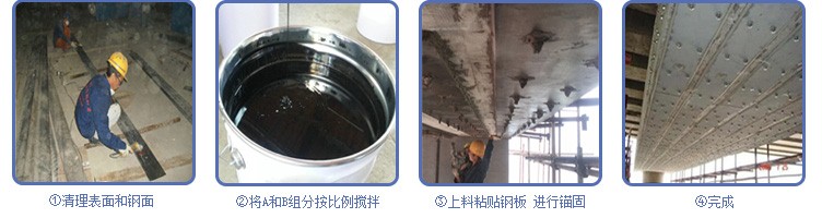 粘貼鋼板加固是使用結(jié)構(gòu)膠粘劑將薄鋼板粘貼于結(jié)構(gòu)的主要受力面,以提高截面的抗彎 和抗拉承載力。適用于鋼筋混凝土受彎,大偏心受壓和受拉構(gòu)件的加固。本粘鋼膠具有良好粘結(jié)性能和力學(xué)性能,把鋼板與混凝土牢固地粘結(jié)在一起,有效地傳 遞應(yīng)力,使加固構(gòu)件能夠整體工作,提高構(gòu)件的承載能力. 產(chǎn)品具有如下特性: