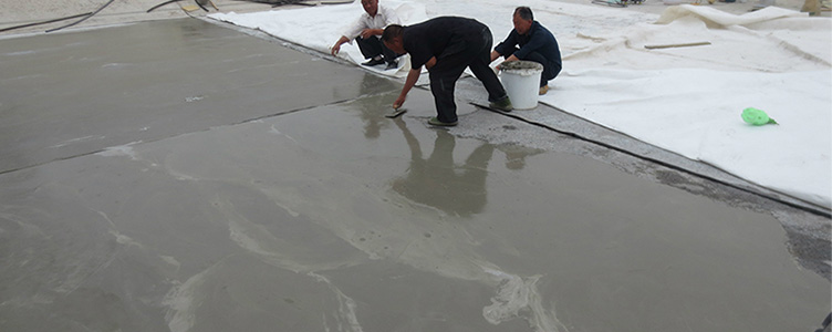3、 拌合均勻后的產(chǎn)品是粘稠膠泥,使用刮刀將膠泥均勻涂抹于施工區(qū)域;