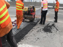 珠海機(jī)場(chǎng)水泥混凝土防滑罩面鋪設(shè)方案澆注式環(huán)氧瀝青混凝土防滑罩面鋪裝方案: 采用酷邦環(huán)氧瀝青作為膠結(jié)劑和級(jí)配防滑骨料,以澆注施工方式進(jìn)行鋪裝施工,鋪設(shè)8mm – 10mm厚度的環(huán)氧瀝青防滑罩面。舊水泥混凝土地面需做銑刨修補(bǔ)處理,在干凈銑刨后的水泥混凝土面層直接加鋪粘結(jié)層,產(chǎn)品鋪裝效果與AC-5細(xì)級(jí)配瀝青混凝土相似。 |